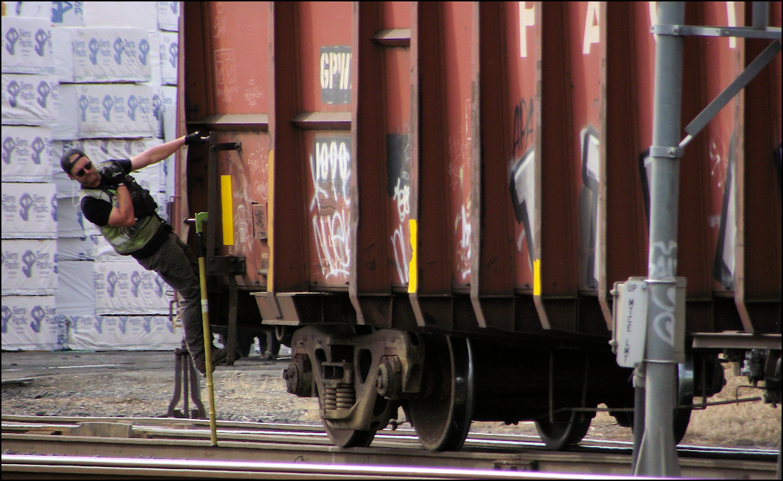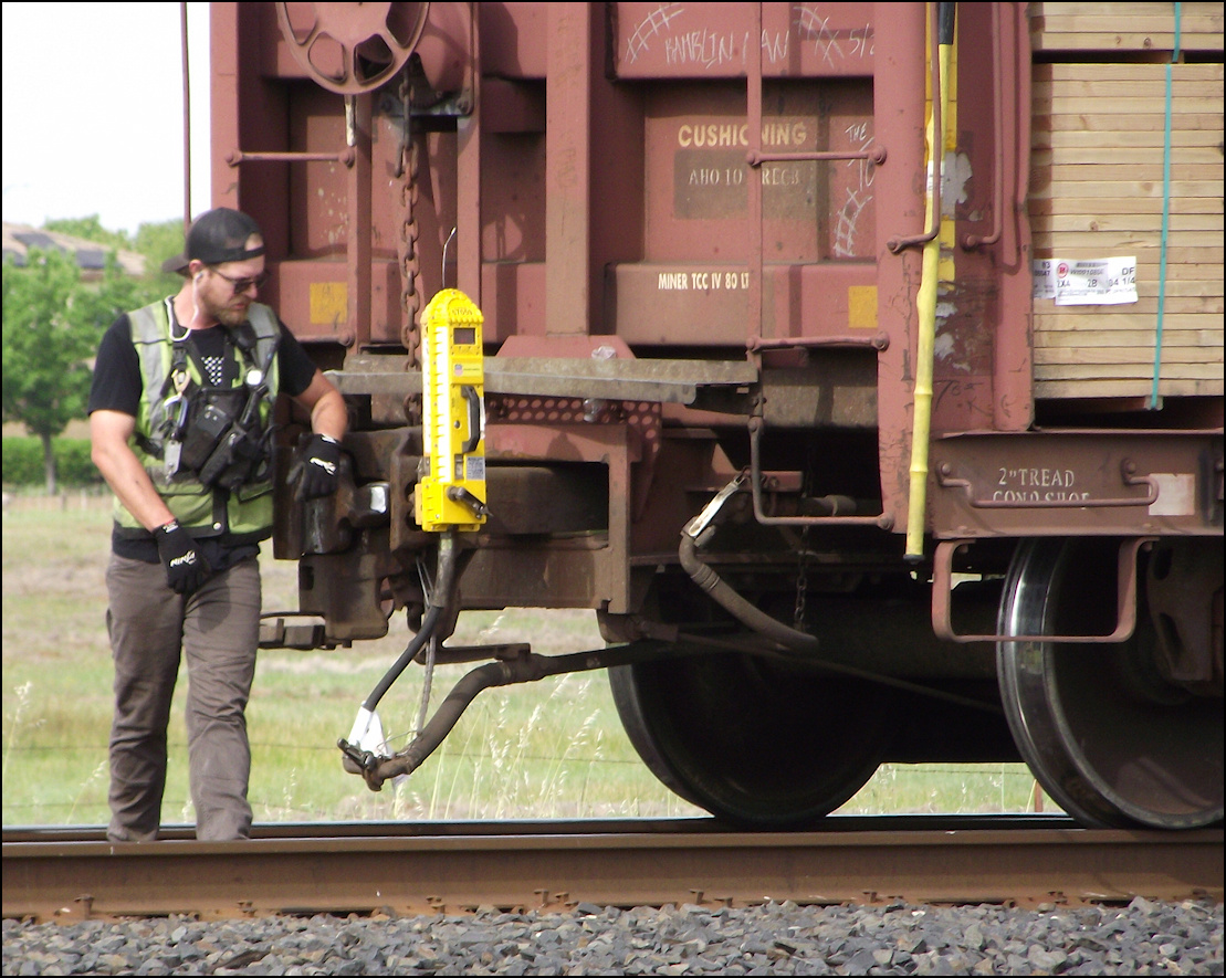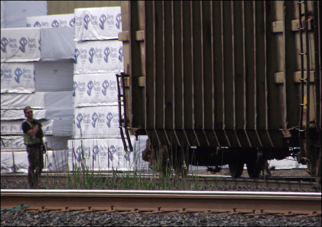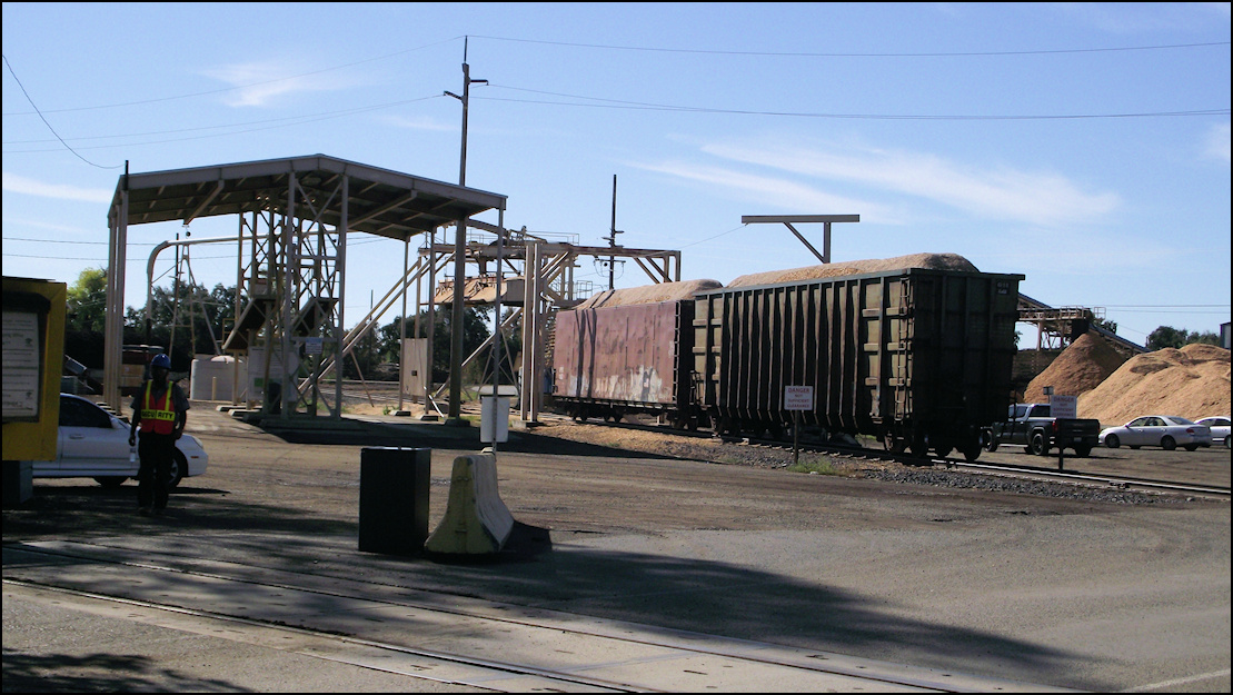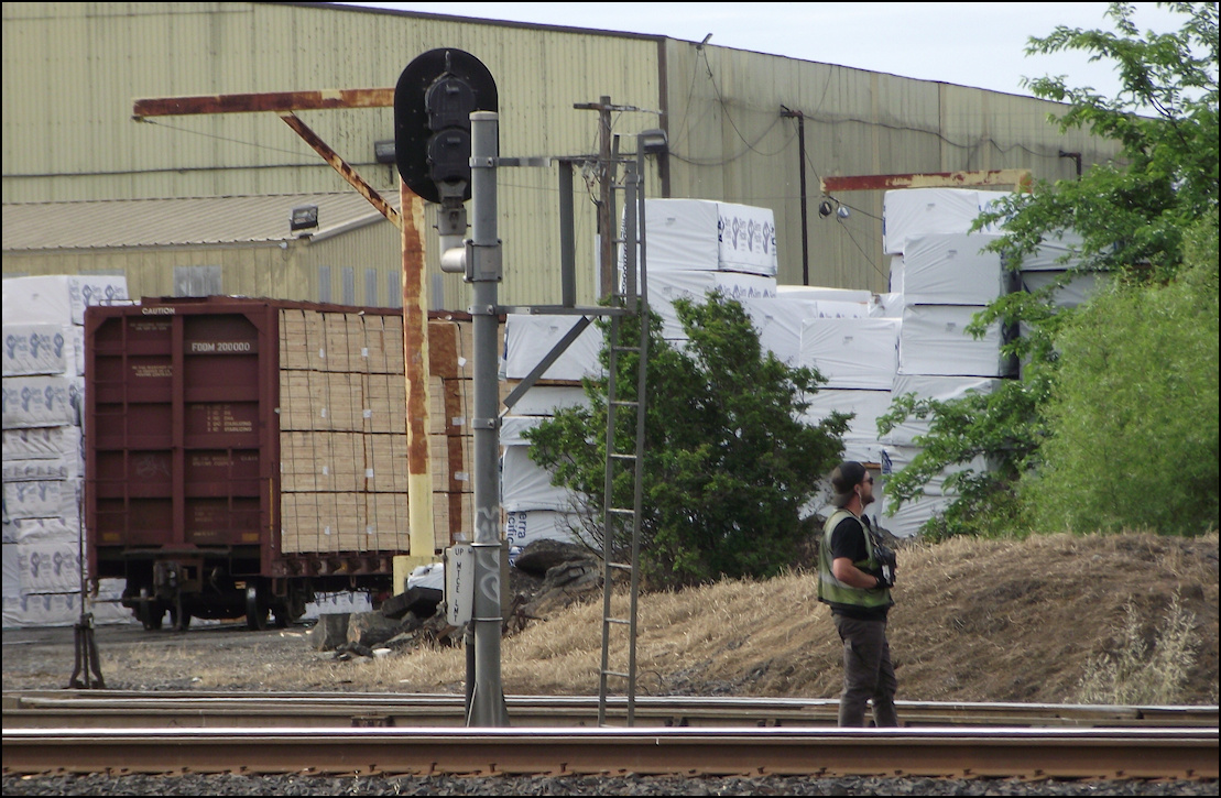 Photo: I'm on the Roseville Parkway overpass which looks down into L.B. Construction, at the single spur track that feeds this industry. The forklift is busy unloading plywood and these cars will be picked up late in the afternoon, as the last stop before the "Rocklin Rocket" enters the yard. "Rocklin Rocket" works L.B. Construction once or twice a week. Photo: It's a little before 09:00 in the morning, Wednesday, April 15, 2026 and U.P. #9926, a EMD SD59MX leads the "Rocklin Rocket" east, at M.P. 110.0, just east of the Andorra hold signal and the Roseville, CA yard. It's a short train today, but I imagine she'll be stopping in a few minutes at Sierra Pacific Industries, located east of Lincoln, to pick up some loads. The primary products hauled by the Rocklin Rocket are construction and building materials, lumber and wood products, along with various manufacturing and industrial materials, including sand, gravel and chemicals. The train always sports two units, and the train cars when leaving Roseville usually number between four to twenty, with about the same number of cars being hauled back to Roseville at the end of the day. Today, we're watching the "Rocklin Rocket" working Sierra Pacific Industries, located three miles east - Railroad timetable - of Lincoln, CA. It's Thursday, April 09, 2026... all aboard! Photo: The west end of Sierra Pacific Industries sports an interesting track arrangement at the spur that comes off the main line. This west end spur is at milepost 118.0, but curiously, it isn't marked on the signal. Photo: Sierra Pacific Industries is a industrial modern operation, and the entrance to the plant is closely monitored by a security officer, who keeps an eye on the main entrance. It's private property, so you need a reason and permission from the guard to enter. Photo: I'm outside the properly, but able to take photos of the railroad operation on a lazy Sunday afternoon, where only a few employees, along with the security guard are at work. Photo: It's 09:14 in the morning, Thursday, April 09, 2026 as #9914 leads the "Rocklin Rocket" across Sierra Pacific Industries' private crossing at M.P. 118.2. The train is slowing down, as when the rear end clears the east spur track the train will stop, and the crew will begin their day's work at Sierra Pacific. Photo: The train has reached the spur at the east end of Sierra Pacific Industries, and is backing in to spot empty finished lumber cars. Note the hand-thrown switch, which is carefully locked and aligned with the main line after use. Photo: Look at this... #9914 sports "Rocklin Rocket" lettered on her hood, in the same style that U.P. #4014, "Big Boy" has on the smokebox. I suppose it's only fitting, as later in the day, U.P. #4014 - "Big Boy" - will be passing by on the way to delight the crowds during two days of public display in Roseville. Photo: After dropping off the empties, it's time to pick up a few loads, as the conductor radios the engineer. Photo: The conductor has thrown another switch to pick up a different set of loaded cars on a parallel track. This is quite a large operation and a steady, 5-day-a-week customer for the railroad. Photo: The last load has been picked up and it's time to pack things up and head east toward Oroville. Photo: The last thing the conductor does is re-attach the FRED to the rear of the train. When that task is complete, he'll step aside, radio the engineer, and the engineer will back the train to pick him up. That complete, the train will highball east, toward the next stop, possibly at Ostrum. Today, I didn't follow the "Rocket" any further, as I was setting up show at M.P. 121.04 to catch X4014, "Big Boy" later in the day. Photo: It's 11:25 in the morning, and "Rocklin Rocket" crosses Chamberlain Road at M.P. 121.0 as she rolls east toward Oroville. After working Georgia Pacific and other industries, she'll turn around on the wye and work her way back to J.R. Davis yard, in Roseville. The whole thing will happen again tomorrow, as it does practically every weekday morning. Photo: "Rocklin Rocket" gathers speed, as it heads east at M.P. 121.04, about a half mile west of the west switch at Brock. Weekday mornings, you can almost set your watch by the Rocklin Rocket, and their predictable schedule makes for a great, leisurely day of railfanning Union Pacific's Valley Subdivision. It's interesting to note the official Union Pacific Railroad train symbol for the "Rocket" is LRR62, but thankfully, everyone, including railfans and railroaders alike refer to this train as the "Rocklin Rocket!" Local railroading at it's best... "Rocklin Rocket," serving Placer, Yuba, Butte Counties and especially Sierra Pacific Industries, located in Lincoln, CA.. Sierra Pacific Industries Copyright(c) 2026 eRench Productions. All rights reserved. We've been on the web since December 22, 2002.