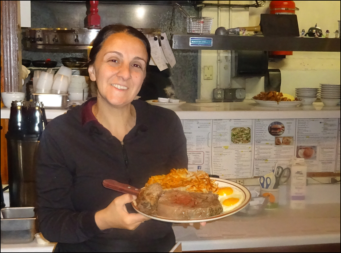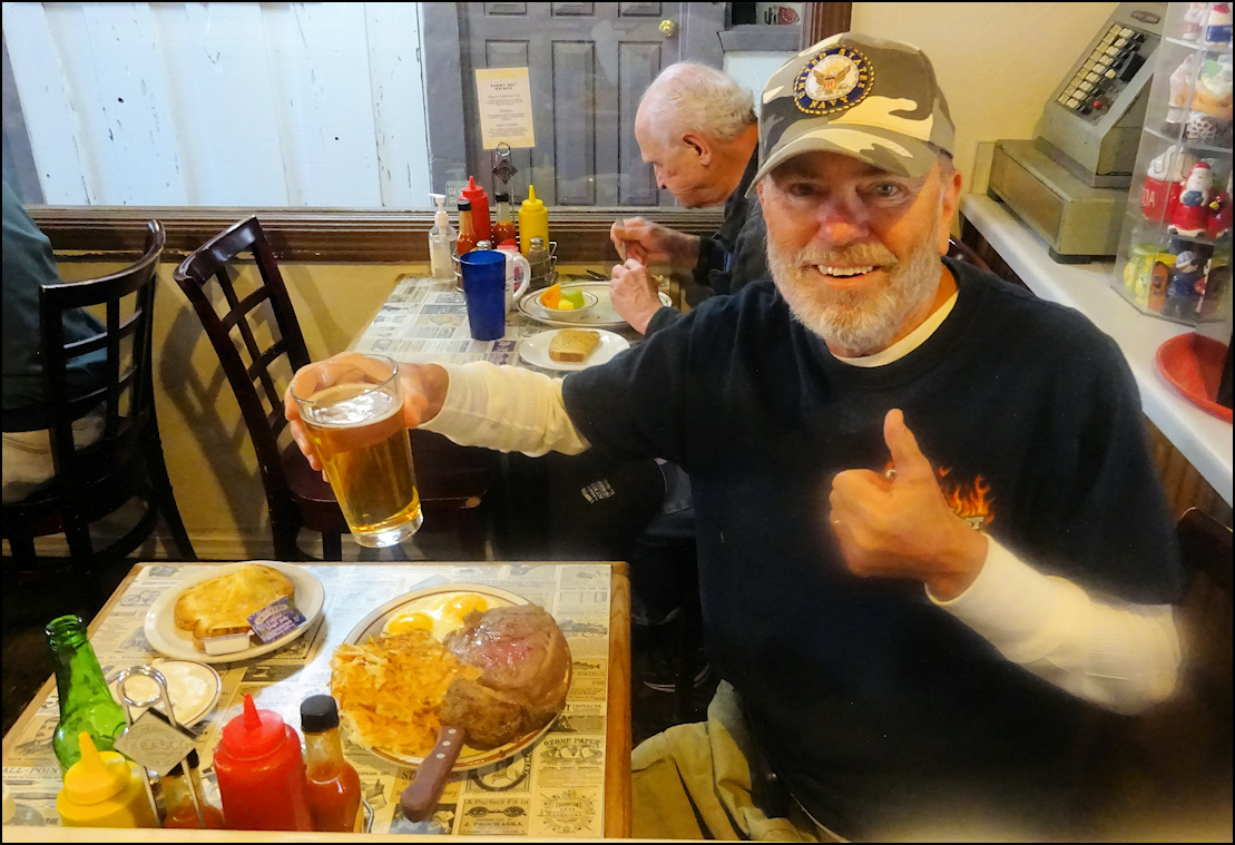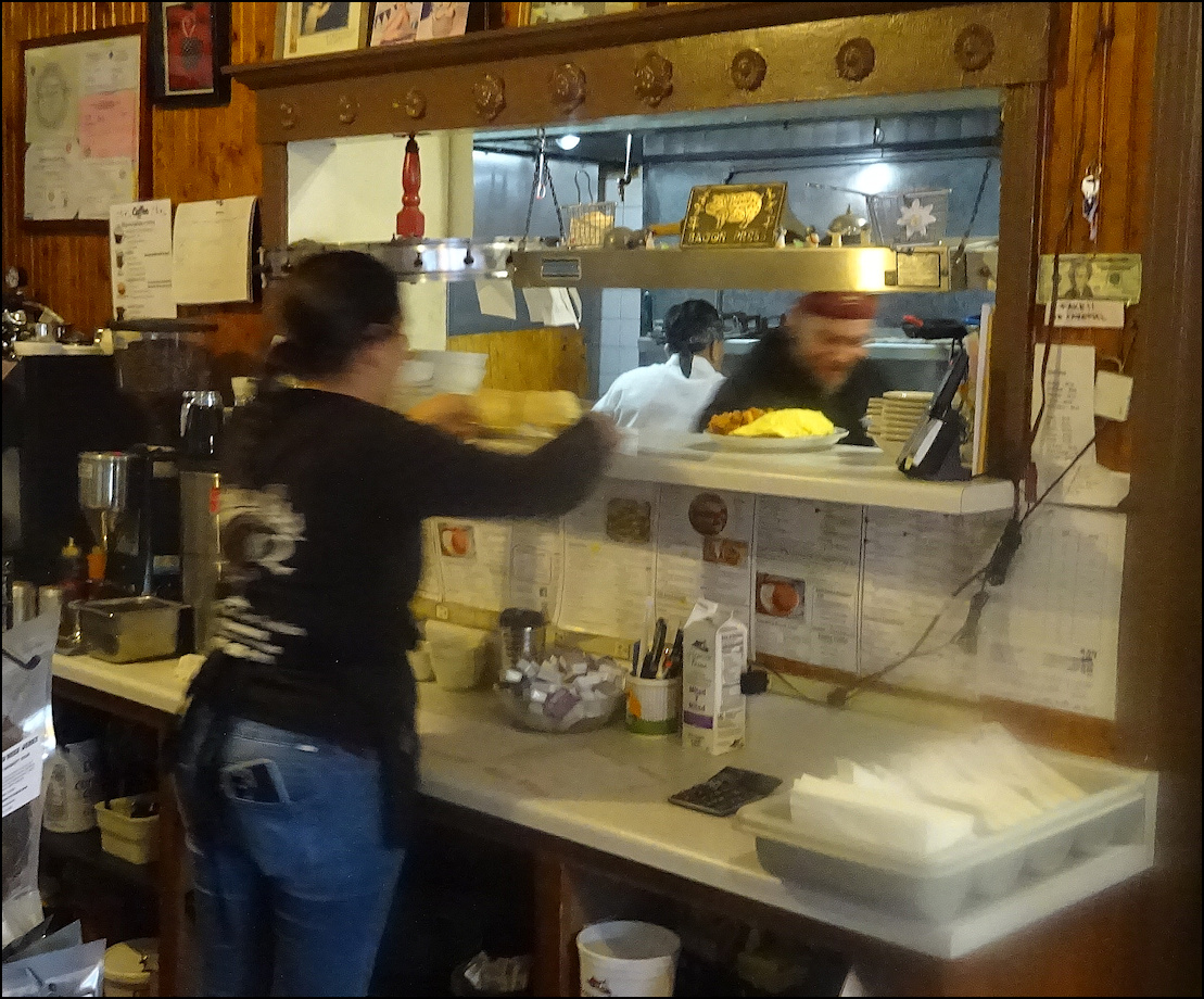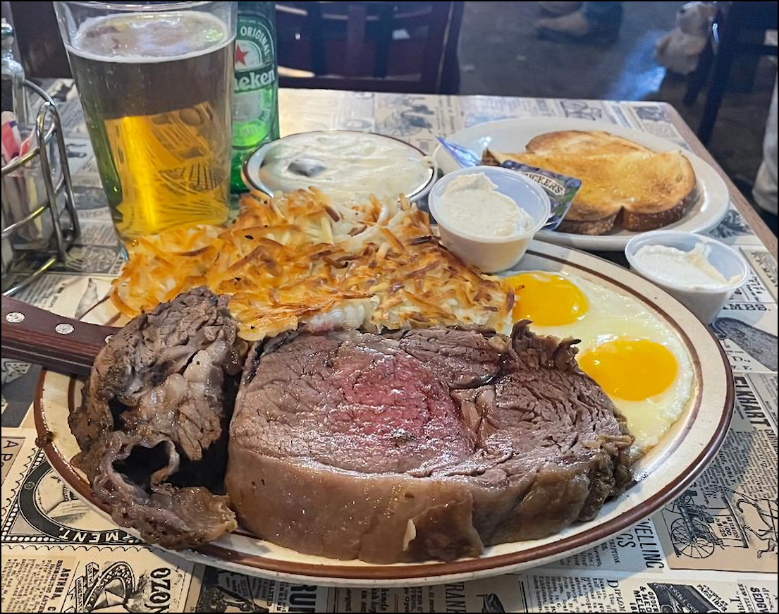 Photo: Today is the first Saturday in the month of April, 2026, as the date is April 04, 2026, and it's time to enjoy a delicious breakfast of prime ribs and eggs. Photo: I arrived about 10 minutes after the 07:00 morning time to a very busy dining room, with the owner of the restaurant, Jessica as the only server on duty. She'd get relief at 08:00 when Ashley and Anna came in. Talented chefs Jay and Roberto were doing today's kitchen duty. Photo: Jessica reaches for an order that chef Jay has just set on the kitchen shelf. On this Saturday morning, Jessica was a very busy lady, but, as always, she went out of her way to be friendly and accommodating. Note the old school order wheel, which in 2026 is still used to relay orders to the kitchen staff. Photo: Meet Jessica, the super friendly owner of the restaurant who brought my breakfast to me with a smile. Despite the busy restaurant and her being the lone server, she went out her way, as always, to treat me like a rock star. Photo: I'm a happy guy, as I toast Jessica, along with the staff at Edelweiss Restaurant 2 with my Heineken beer. Cheers!