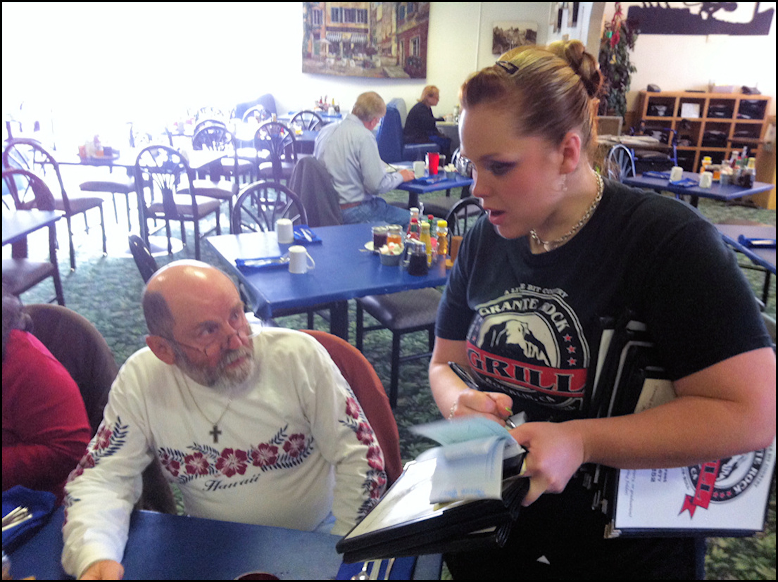 Photo: Perfect hash brown potatoes, trimmed with sprgs of parsley, along with perfectly grilled eggs over easy, as per my order. Photo: Freshly baked biscuit, a small cup of soft butter, along with a side of delicious sausage gravy, trimmed with small slices of parsley. Delicious! Photo: The two-plate presentation looked pretty, but since I was hungry, I combined everything on one plate, in order to "mix and match" as I ate. Today was especially decadent, as I buttered the biscuit and then dipped it in the delicious gravy. This breakfast was amazing! Back on Friday, March 30, 2012, the now defunct Sacramento Breakfast Club enjoyed a meeting at Granite Rock Grill, located in Rocklin, CA. Granite Rock Grill takes breakfast seriously, as their web page states their motto, which reads: "Home of the BEST breakfast in the greater Sacramento Valley/Placer area. That's quite a statement, so on Friday, March 30, 2012, the Sacramento Breakfast Club held today's meeting at Granite Rock Grill, so we could see if their motto is really true. Photo: Granite Rock Grill seems small from the outside, but inside, the dining room is very spacious, and offers a mixture of comfortable tables and booths. For a restaurant that serves only breakfast and lunch, Granite Rock Grill has one of the larger dining rooms of area restaurants. Photo: Our server, Rosa, takes our order. She pushed three tables together to accommodate today's members. Only a portion of the dining room is shown in the photo, but it gives an idea of how large this room is. The mural on the wall is a reminder of years gone by, when the restaurant was known as "Gold Miner Cafe." Photo: Granite Rock Grill features a small, yet comfortable breakfast counter. When I dine alone, I always sit at the breakfast counter, as I like to be near the action. Photo: Our friendly server, Rosa, takes Gerry's order of corned beef hash and eggs on this sunny Friday morning, March 30, 2012. Photo: Rosa poses for the camera, with a portion of our breakfast she's about to place on the table. Rosa and all of the staff at Granite Rock Grill are some of the friendliest folks we're had the pleasure to meet, and are very attentive, and make you feel at home. I give Granite Rock Grill the "coffee cup refill award," as there was one staff member who seemed to be dedicated to keeping coffee cups full, and my coffee cup never went below the half-full mark. I lost count of how many cups of coffee I drank after my 10th cup. Seriously... Photo: I had originally planned to order only eggs, potatoes, toast and coffee, but Rosa recited today's specials, and one of them was an Italian sausage omelet, which she called a "pizza omelet," and since I'm a sucker for Italian sausage, I changed my mind and followed her recommendation. The omelet included Italian sausage, salami, bell peppers, onions, parsley, cheese and I don't know what else. I ordered homestyle potatoes, with optional gravy, coffee and sourdough toast. Rosa was right on the money with her recommendation, as this breakfast was superior! The portion was absolutely GIANT, as I couldn't eat it all, even after kicking every bit of eating power that I possess. This breakfast was delicious! By the way, Granite Rock Grill's menu features a vast array of breakfast choices, with everything from super-healthy fruit and cereal, to calorie-bomb breakfasts, such as the breakfast I enjoyed today. Whatever you desire for breakfast, you'll find it at Granite Rock Grill. Photo: Today's members of the Sacramento Breakfast Club, from left to right: Eric Rench, Bev MacLeod, Dan MacLeod, Teri McCloud, Sean McCloud, David DeMario, Betty Townsend and Gerry Townsend. Thanks to Rosa, our super friendly server, for taking the photo. Breakfast at Granite Rock Grill is an awesome experience, as the dining room is huge, attractive and very comfortable, the staff is super friendly and attentive, the portions are gigantic, the presentation is beautiful, and the food is simply delicious. As fast as the question goes, "Does Granite Rock Grill serve the best breakfast in the region?" ... I can't answer that question, but I can tell you that Granite Rock Grill serves a breakfast that members of the Sacramento Breakfast Club will be talking about for a long time to come. Breakfast at Granite Rock Grill is truly an awesome experience, as the dining room is huge, attractive and very comfortable, the staff is super friendly and attentive, the portions are gigantic, the presentation is beautiful, and the food is simply delicious. As fast as the question goes, "Does Granite Rock Grill serve the best breakfast in the region?" ... I can't answer that question, but I can tell you that Granite Rock Grill serves a breakfast that I'll be thinking about for quite some time. Granite Rock Grill Copyright(c) 2025 eRench Productions. All rights reserved. We've been on the web since December 22, 2002.