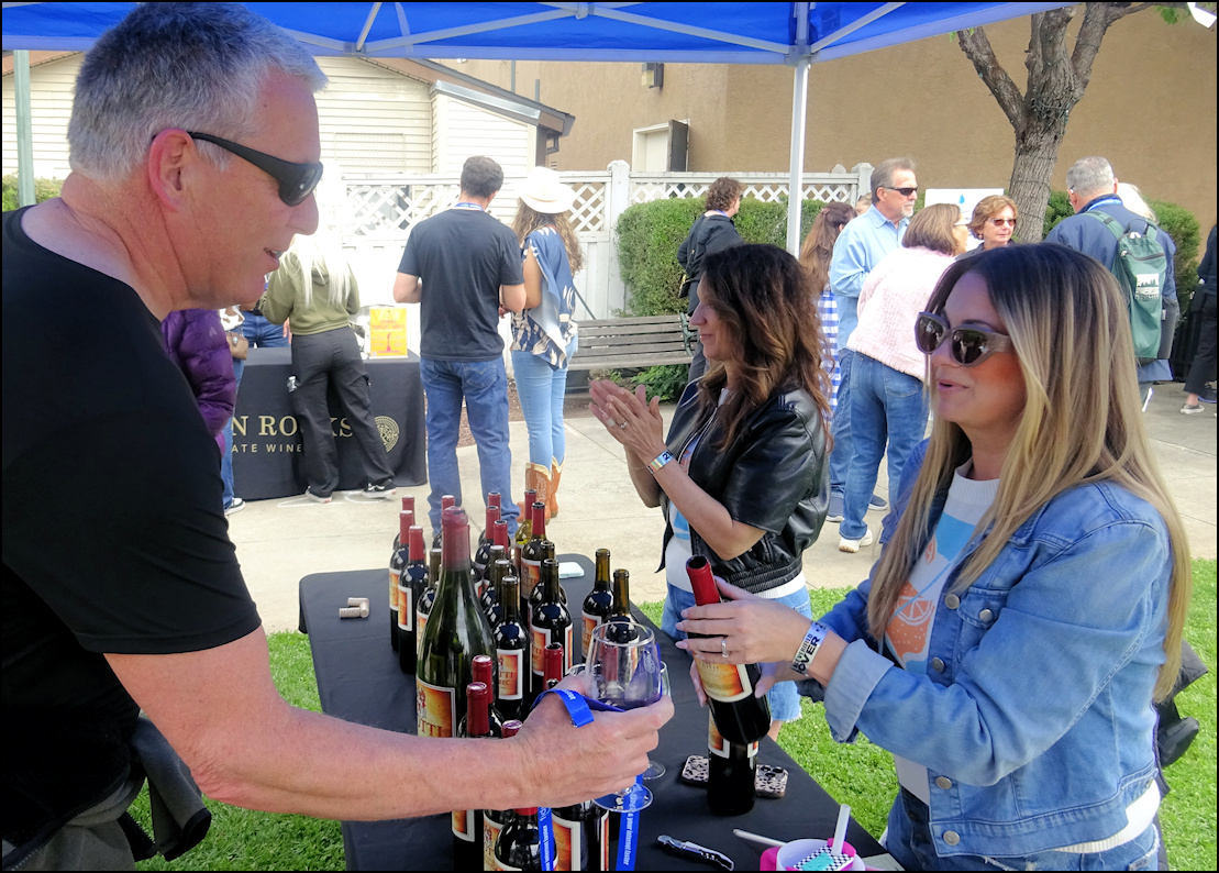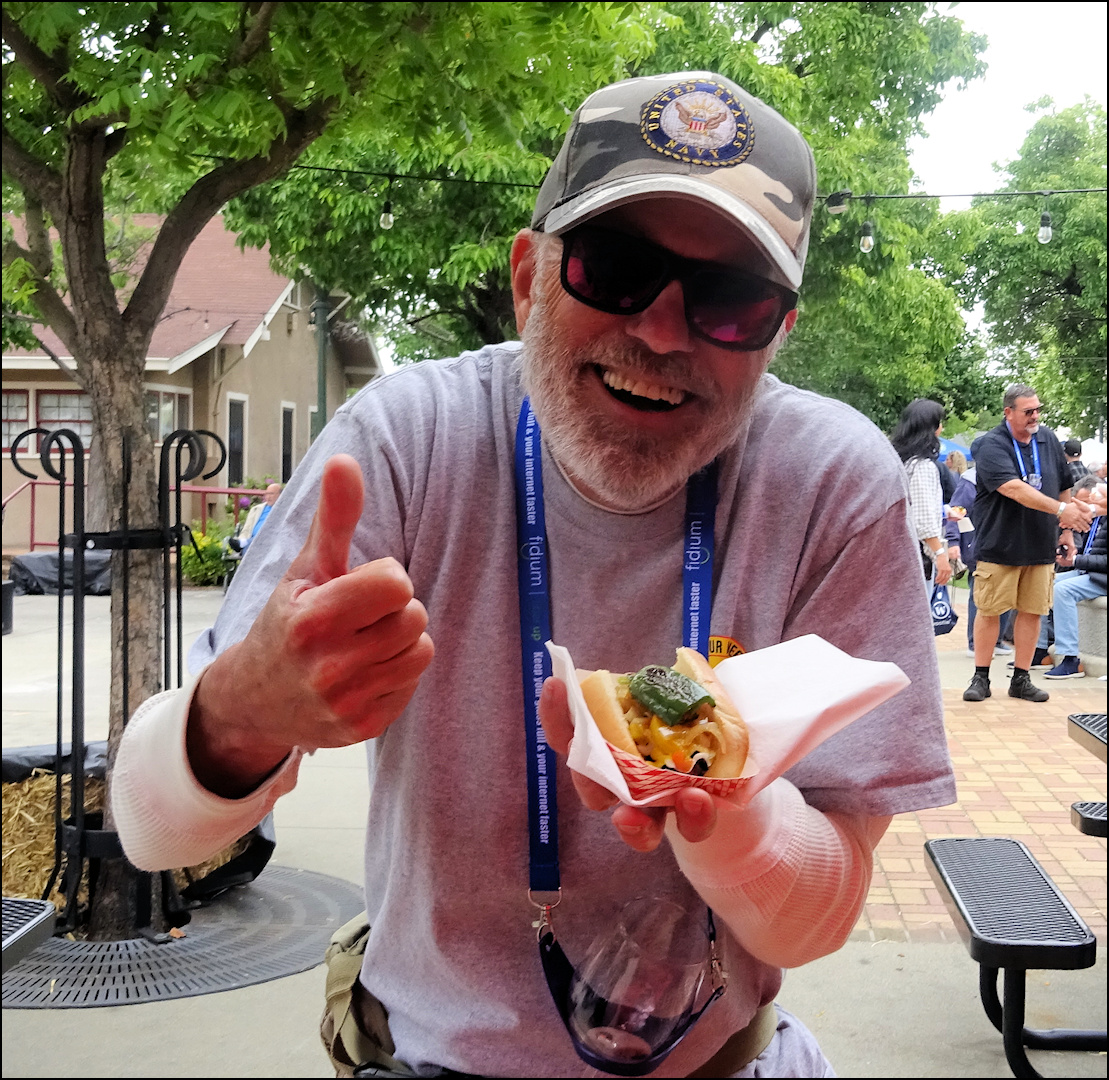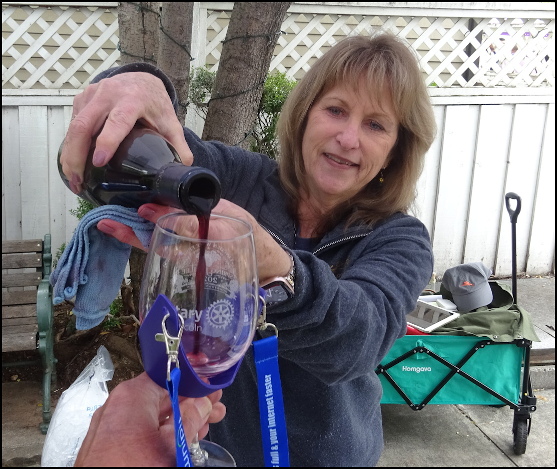 Lincoln Wine Fest 2026! Hosted by the Rotary Club of Lincoln, CA, held in downtown Lincoln, and featuring wines and beer from Placer County. Samples beer and wine from Placer County wineries and breweries, along with small bites of food, while strolling the streets of charming downtown Lincoln. This event was everything a "foodie" could hope for... only slightly dampered by the chilly weather. What's a little weather to worry about when you're enjoying beer, wine, food and great company! As with all of reviews that I publish, I have no affiliation with the restaurant reviewed, and there is no monetary gain on my part, as I am simply a person who likes to eat, and I love to write-up, and publish my dining experiences. Photo: Lincoln Wine Fest 2026 was a fundraiser sponsored by the Rotary Club of Linclon, and all of the helpful staff were Rotary Club volunteers. The friendly and helpful staff helped make the event run smoothly, and to make it enjoyable. When you checked into registration, you received a wine glass, a lanyard to wear it around your neck, and a wristband as proof that you're 21 or older. Then, for the next four hours, you were free to wander downtown Lincoln, CA, in the vicinity of Beernann Plaza to sample wine, craft beer and small bites. The food, wine and beer are all Placer County local. You'd always look for a sign like this, as it would tell you a food or drink venue was located inside. This event was a bargain, as it only cost $60.00 for four hours of wine, beer and food sampling, along with live entertainment from a couple of bands and various local musicians. For those of us who live in western Placer County, we're fortunate as there is always something fun to do, especially if you're a "foodie." Photo: Just outside of Beermann Plaza, the Soroptimist International of Lincoln set up a background, perfect for photos. Photo: Happy Dayz Vineyard, a husband and wife team, set up shop in the plaza and was handing out samples of their fine wine. Photo: I chose a sample of "Petite Sirah 2022" as the friendly host and I toast the vineyard, and the fun event. Photo: I'm happy with my pour of "Petite Sirah 2022," which was a smooth, mellow wine, with just enough of a "smoky oak" taste to make it interesting and delicious. Happy Dayz Vineyard is a local winery, located in Penryn, which is about halfway between Roseville and Auburn. Happy Dayz Vineyard Photo: These two friendly ladies were pouring wine from Ciotti Cellars, a Lincoln-local winery. Placer County is known for it's fine wine, along with a very laid-back and friendly atmosphere, which you won't find over on the coast in the Napa Valley wine country. Photo: I enjoy a pour of "Ciotti Merlot 2021" which is a delicious, full-bodied red wine. Merlot has to be one of my favorite varieties of wine. Photo: I raise my glass of "Merlot" and toast the friendly ladies of Ciotti Cellars, and the staff of Lincoln Wine Fest 2026. Ciotti Cellars Photo: Renegade Creek, a local band, set up on the stage in Beermann Plaza, directly in front of the museum, and played a mix of country, folk and classic rock music for much of the afternoon. If you're interested in booking them for an event, give them a call at 916 765-9100. Photo: Manny's BBW Hot Dawgs set up their pop-up restaurant in Beermann Plaza and was serving a small version of their bacon-wrapped "Manny Dawg." You can find Manny set up at various special events all around western Placer County. Photo: Chef Manny prepared me a small version of his delicious "Manny Dawg" with a smile. Manny is a great guy and a talented chef. If you like what you see, check the complete article I've published about my visits to Manny's BBW Hot Dawgs by clicking on the hyperlink. Photo: I'm a happy guy, as I'm ready to enjoy my "small bite Manny Dawg." Manny's proved very popular, as there was a line of diners waiting to enjoy his fine cuisine. I hope that everybody attending the event got to sample one of his dawgs. Photo: Manny's contribution to the "small bites" of today's event was a small hot dog, about half the size of their standard "Manny Dawg." You enjoyed a meaty hot dog, wrapped in bacon, grilled peppers and onion, along with a garnish of mustard and mayonnaise. You also will enjoy Manny's signature of a small grilled jalapeno pepper. This is a Mexican-style hot dog and similar to hot dogs you'll enjoy when you visit any Mexican city, town or pueblo. Such a delicious hot dog! Manny's BBW Hot Dawgs was a crowd pleasure! Manny's BBW Hot Dawgs Photo: It was time to switch gears and enjoy a pour of "Lazy Dog" IPA from Dueling Dogs Brewing Co., a local Lincoln microbrewery. They're noted for "farm crafted" beer on top, and their taproom serves pizza, baked in a wood fired oven. Photo: I love beer, and there is nothing better than a locally brewed IPA! Photo: My pour of "Lucky Dog" IPA, thanks to Dueling Dogs Brewing Company, located in Lincoln, CA. Their IPA was delicious! Dueling Dogs Brewing Co. Photo: Le Casque Wines, a local winery located in the Sierra Nevada foothills in nearby Looms was pouring samples of some of the fine wine they produce, including my choice of "2024 Sauvignon Blanc." Photo: The friendly bartender pours my glass with a refreshing sample of their wine. Photo: I give a "thumbs up" to my sample of "2024 Sauvignon Blanc," provided by Le Casque Wines, located in nearby Loomis. Le Casque Wines Photo: Rappe Family Vineyards, local to nearby Auburn, was offering pours of several of the varieties of wine they produce. So many choices... it was hard to decide which one to choose! Photo: I went for a pour of "2023 Pinot Nor Lodi," which was a truly delicious, full-bodied red wine, poured by my friendly hostess. Such a smooth, delicious wine! Rappe Family Vineyards Photo: Meet Adam, a member of the Lincoln Rotary Club and one of the friendliest volunteers of the event. All event staff were volunteers and most were Rotary Club members. Photo: On "E" St., just east of Beermann Plaza