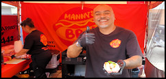 Manny's BBW Hot Dawgs: Bacon wrapped hot dogs, just like in Mexico! Pop up restaurant sets up at special events... based out of Lincoln, CA.